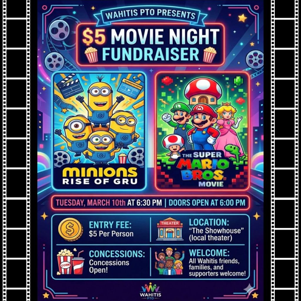 Join Wahitis PTO on March 10th — tickets are just $5, and 100% of ticket proceeds will go directly to the PTO.